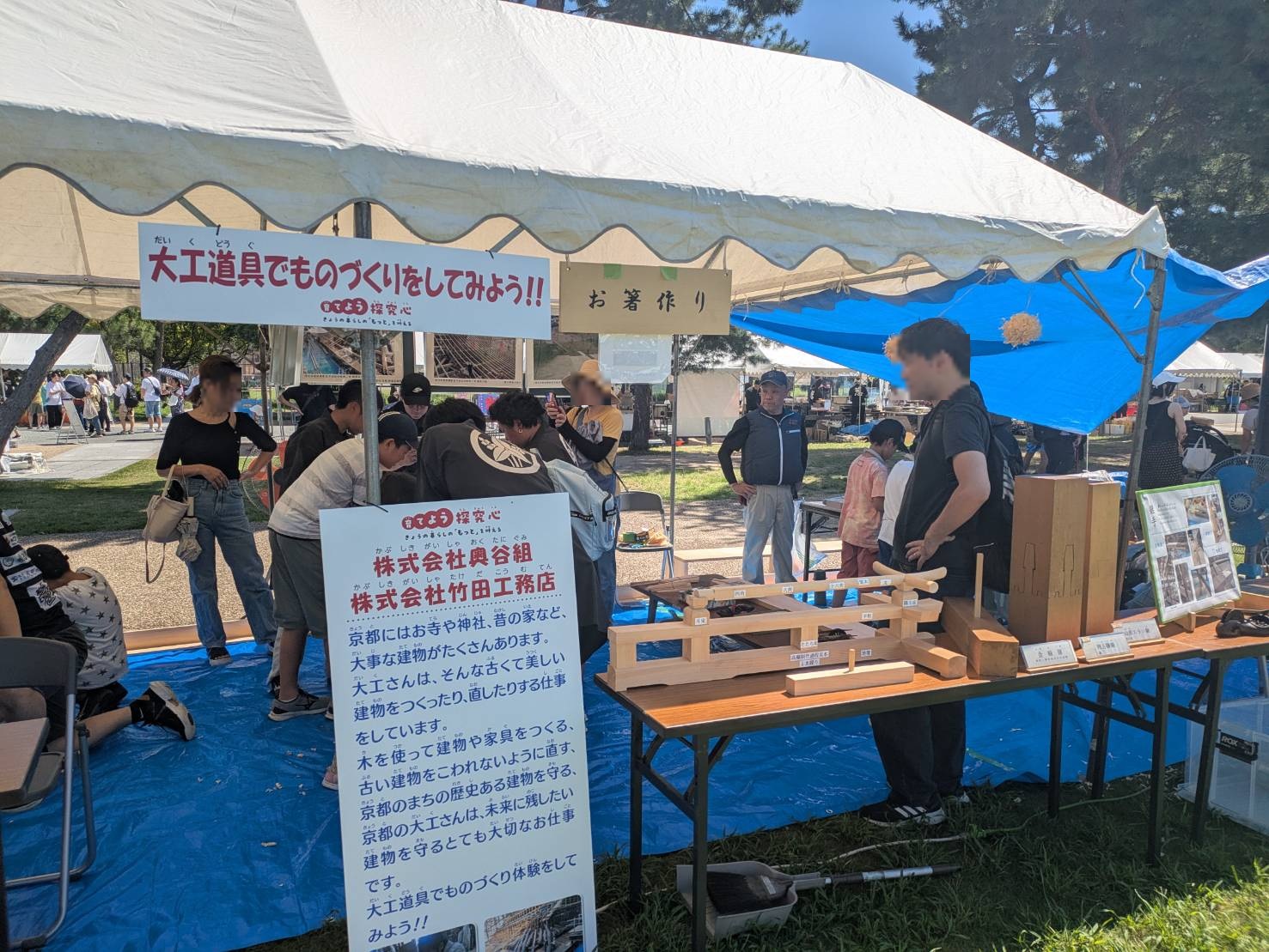 京都の岡崎公園で、子供さんたちにお仕事体験をしてもらうというイベントの中で、「大工体験」のブースを担当しました。